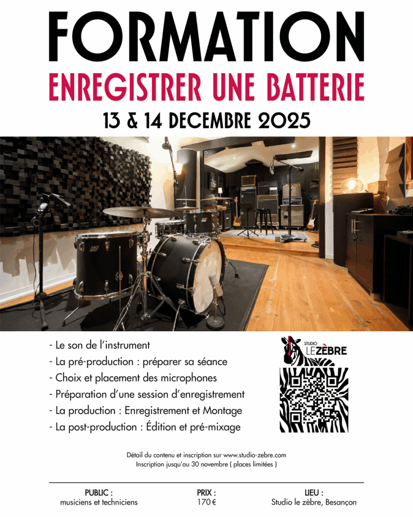 Lieu : Studio Le Zèbre 68 rue des Granges 25000 Besançon.